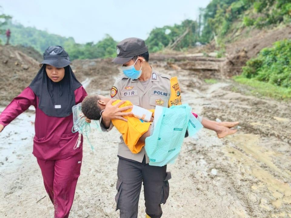 Evakuasi dilakukan secara manual di tengah kondisi cuaca yang tidak bersahabat dan jalur yang tertutup lumpur serta material longsoran. Kendati akses sangat sulit, semangat kemanusiaan dan rasa tanggung jawab mendorong seluruh tim untuk terus bergerak demi keselamatan warga. Peralatan seadanya tak menjadi alasan bagi Brigpol Sudirtor dan tim medis untuk menyerah.