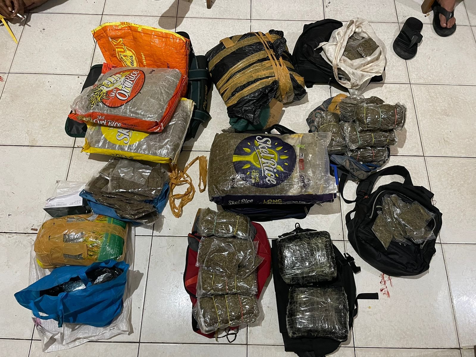 Total barang bukti yang diamankan meliputi meliputi Puluhan bal ganja kering dalam berbagai ukuran, Lebih dari 100 bungkus plastik bening berisi ganja, Serta sejumlah tas dan karung berisi ganja siap edar yang diduga akan diperdagangkan di wilayah Jayapura dengan sistem barter menggunakan motor dan barang elektronik hasil tindak pidana..