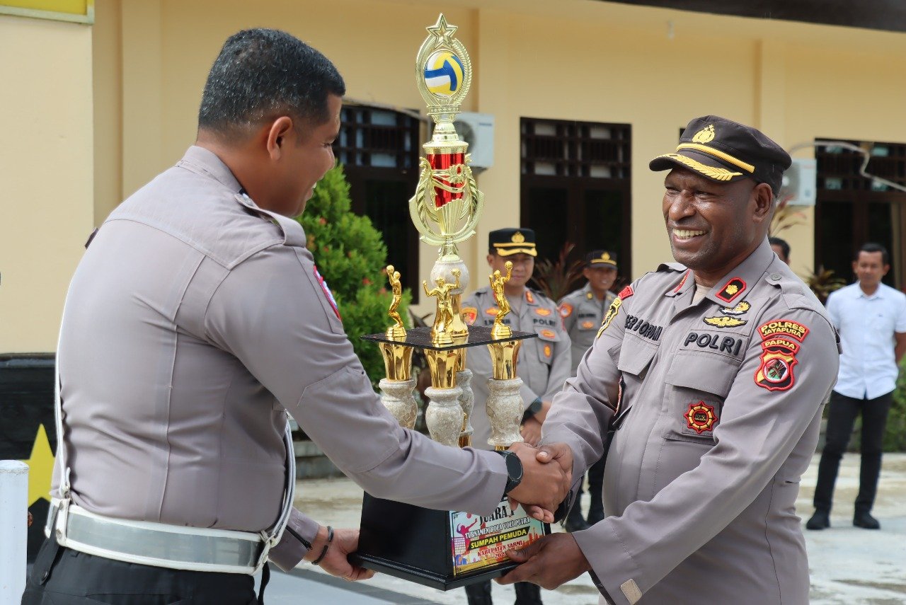 Kapolres Sarmi menyampaikan apresiasinya kepada seluruh anggota tim voli atas kerja keras, kekompakan, dan semangat juang yang ditunjukkan selama pertandingan.