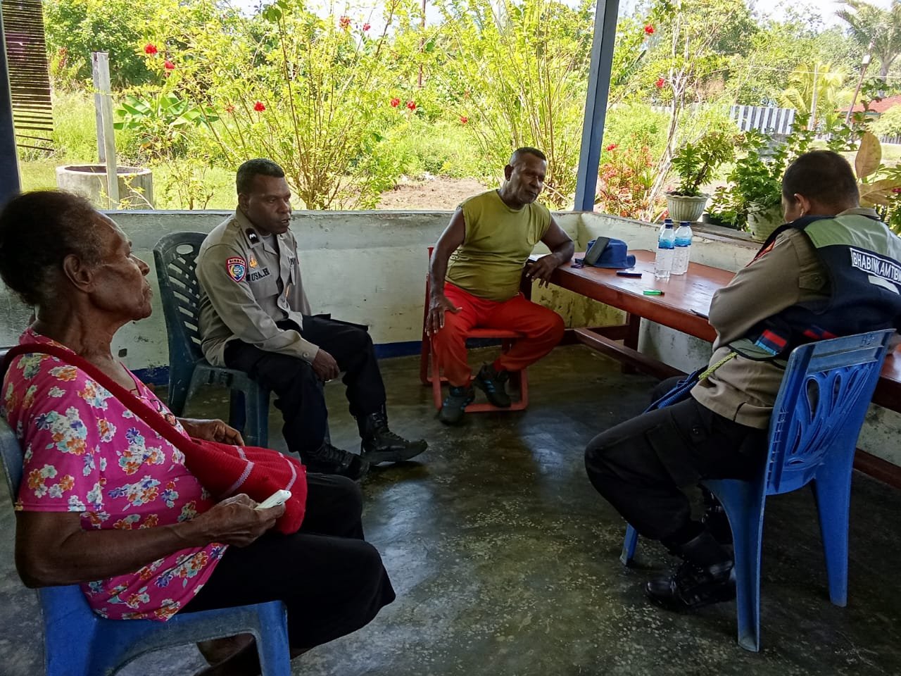 Sarmi – Pada Hari Jumat, 24 Januari 2025. Sat Binmas Polres Sarmi melaksanakan giat Jum’at Curhat dengan mengunjungi Rumah Ondoafi Sarmi Bpk Korneles Matador yang dipimpin Langsung oleh KBO Binmas Aipda Musa Hamokwarong dan Kanit Binkamsa Sat Binmas Polres Sarmi