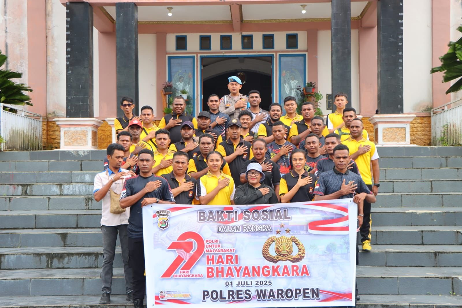 Hari Bhayangkara Ke 79, Polres Waropen Bakti Sosial Religi Di Gereja GKI Bethania Waren