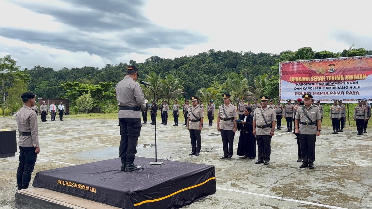 Papua – Polres Mamberamo Raya menggelar upacara serah terima jabatan (Sertijab) pejabat utama di Lapangan Mako Polres Mamberamo Raya, Jumat (29/8/2025) pagi.