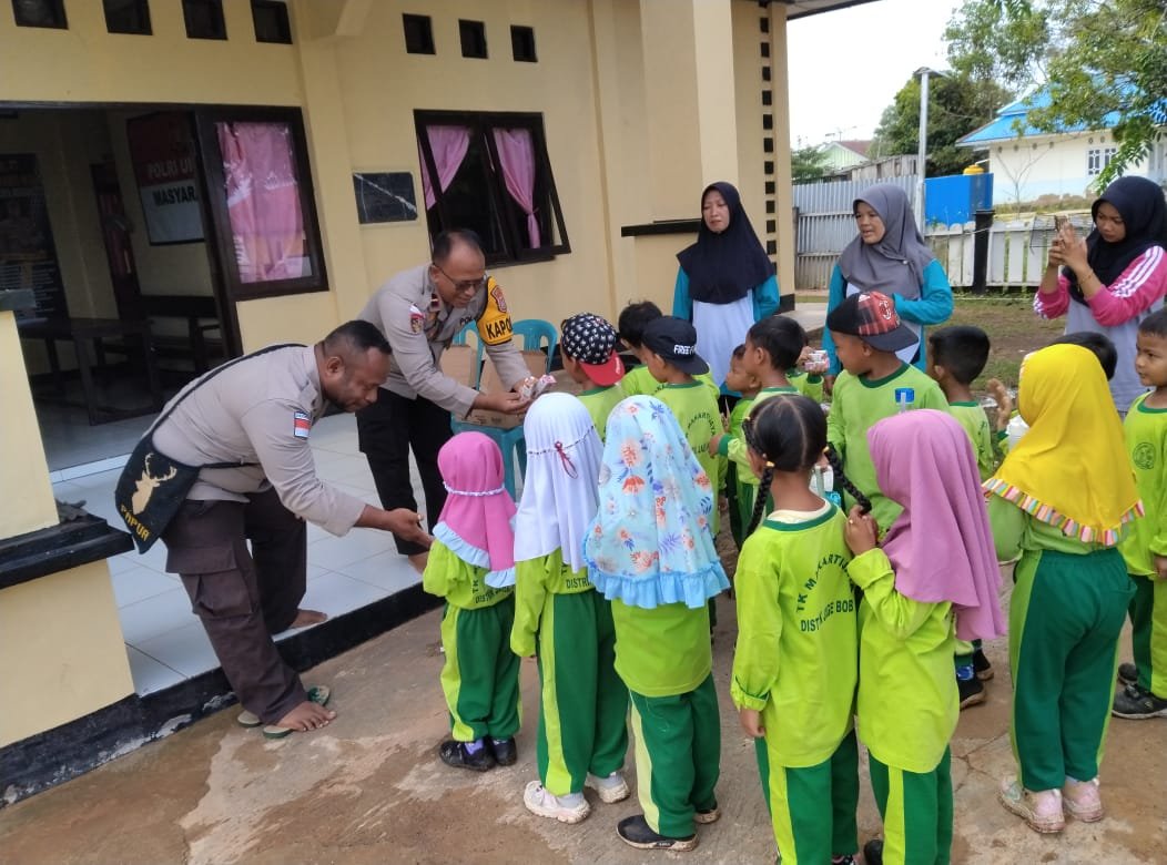 Papua – Polsek Jagebob melaksanakan Program Polisi Sahabat Anak dengan menerima kunjungan murid-murid TK Makarti Jaya dari Kampung Kartini, Distrik Jagebob, pada Jumat pagi.5 Desember 2025