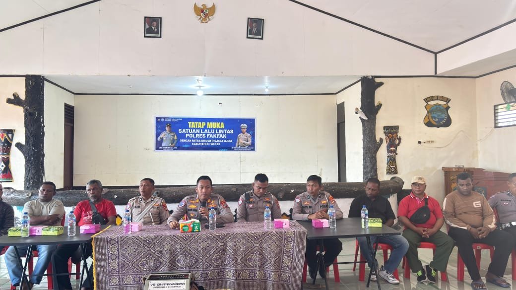 Fakfak, 31 Juli 2025 – Suasana hangat dan penuh kekeluargaan terasa di Aula Anton Sujarwo Polres Fakfak pagi itu. Kasat Lantas Polres Fakfak, AKP Bagus Agung Subahendro, S.Tr.K., S.I.K., menyambut langsung para driver ojek dan ketua pangkalan dari berbagai sudut kota Fakfak dalam kegiatan Tatap Muka dan Silaturahmi.