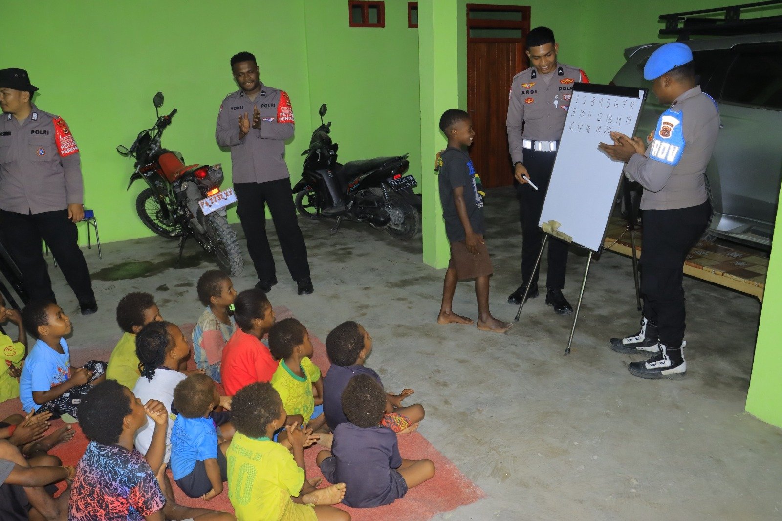 Dalam kegiatan tersebut, para personel Subsatgas Si-Ipar dengan sabar membimbing anak-anak belajar menghitung dan menulis. Melalui pendekatan yang menyenangkan dan penuh keceriaan, anak-anak tampak antusias mengikuti setiap pelajaran yang diberikan.