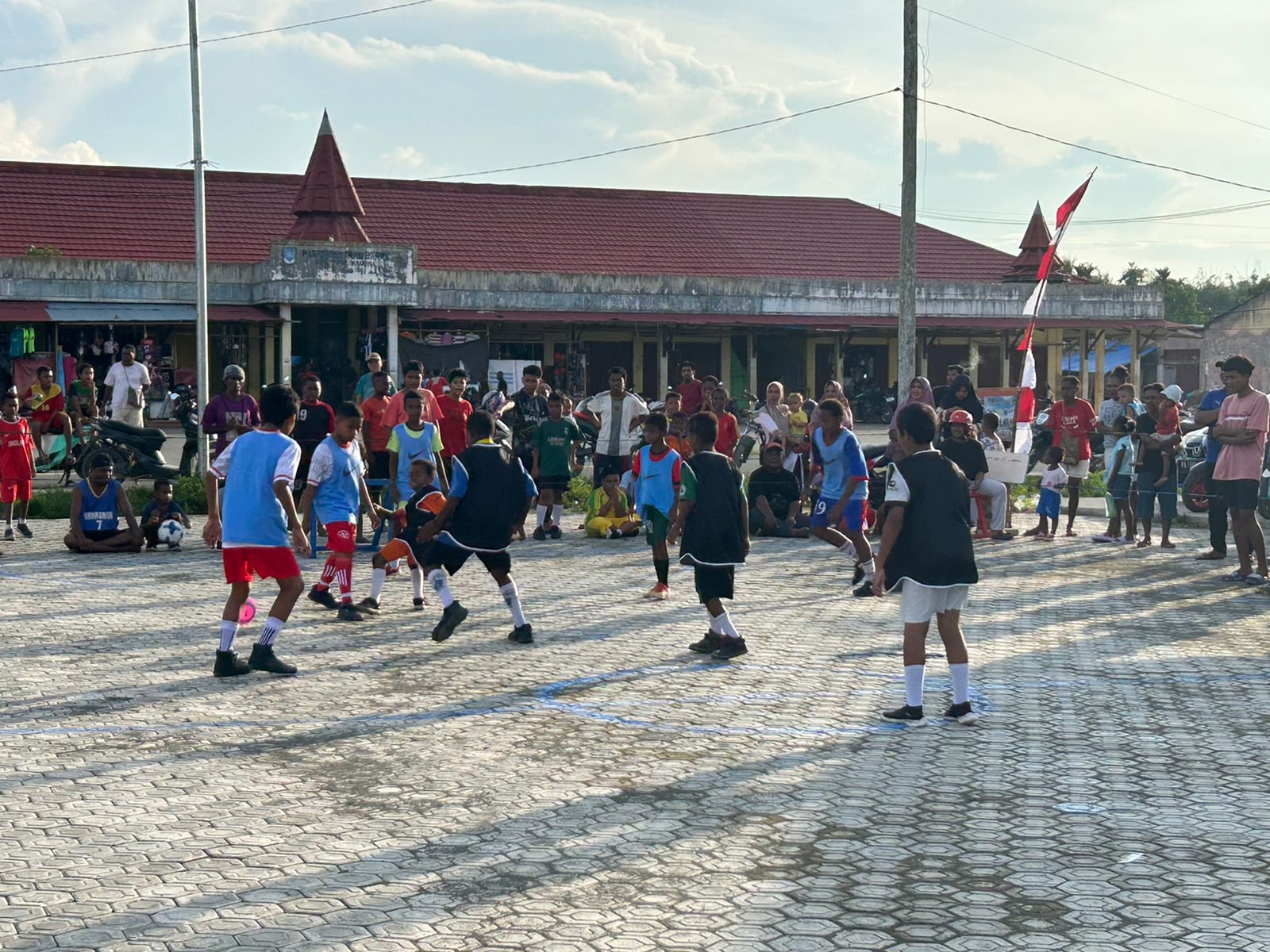 Papua – Memeriahkan hari Bhayangkara ke-79, Bhabinkamtibmas kelurahan Mararena bersama masyarakat Mararena menggelar turnamen sepak Bola mini (Mini Soccer), di lapangan depan pasar sentral Mararena Distrik Sarmi Kabupaten Sarmi, Minggu (29/06).
