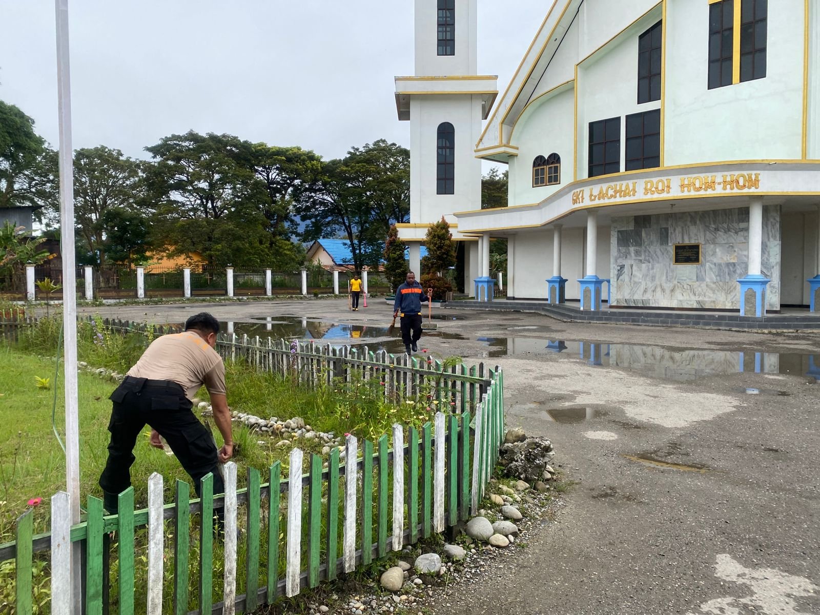 Dalam kegiatan tersebut, personel Polsek Wamena Kota melaksanakan kerja bakti berupa pembersihan lingkungan gereja sebagai bentuk kepedulian Polri terhadap kebersihan tempat ibadah serta kenyamanan masyarakat dalam melaksanakan aktifitas keagamaan, khususnya menjelang perayaan Paskah.