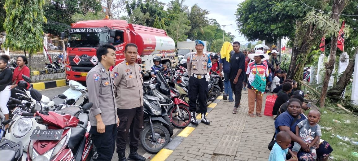 Personel Ops Mantap Praja Cartenz Polda Papua Lakukan Pengamanan Kampanye Akbar Cagub dan Cawagub Papua