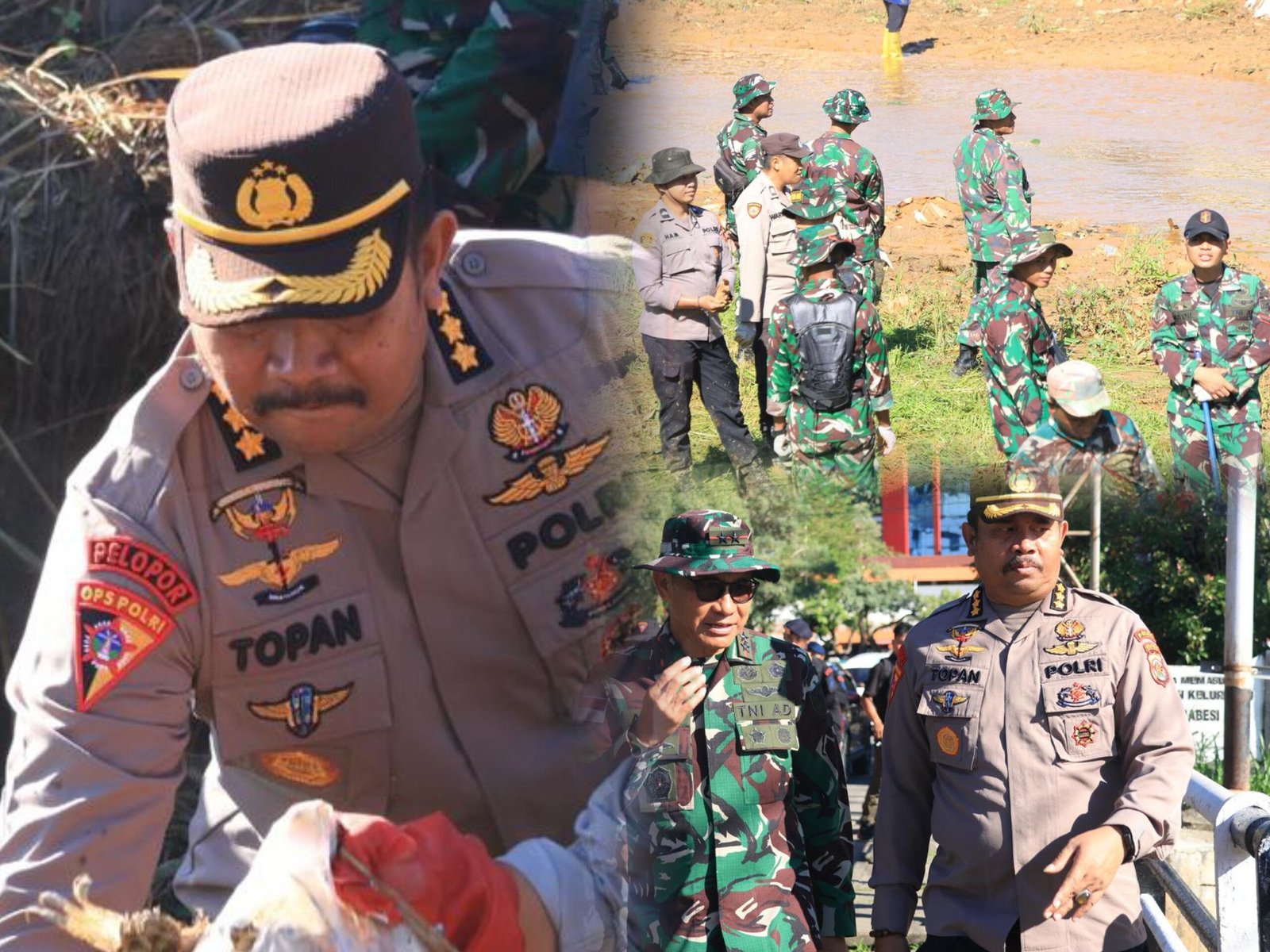 Dari jajaran Polda Papua, turut hadir Karoops Polda Papua Kombes Pol. Slamet Topan, S.I.K., M.Si., bersama Danden Gegana Satbrimob Polda Papua Kompol Clief Gerald Philipus Duwith, S.E., S.I.K., M.Si. beserta personel Polri lainnya yang terlibat dalam kegiatan pembersihan di sepanjang aliran Sungai Anafri.