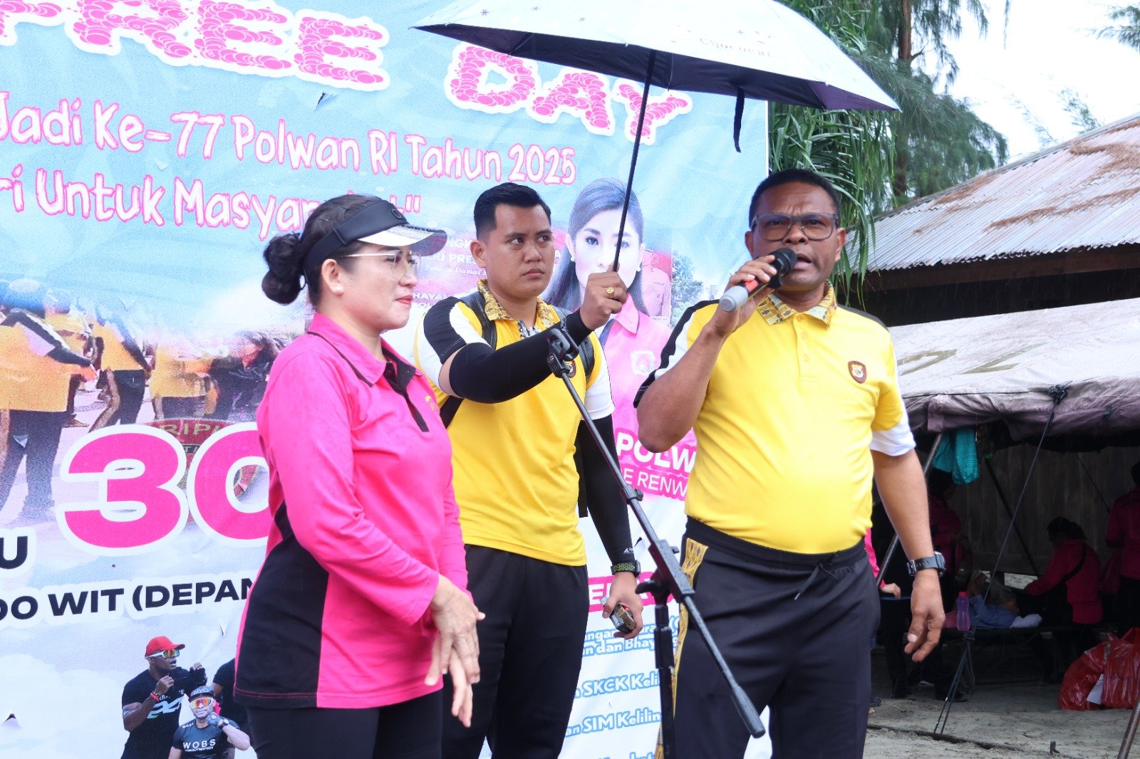Jayapura – Dalam rangka memperingati Hari Jadi ke-77 Polisi Wanita (Polwan) Republik Indonesia dan Hari Kesatuan Gerak Bhayangkari (HKGB) ke-73 Tahun 2025, Polda Papua menyelenggarakan kegiatan Semarak HUT Polwan dengan tema “Polri untuk Masyarakat”. Acara ini berlangsung di Area Car Free Day Jalan Holtekamp, Distrik Abepura, pada Sabtu (30/08/2025).