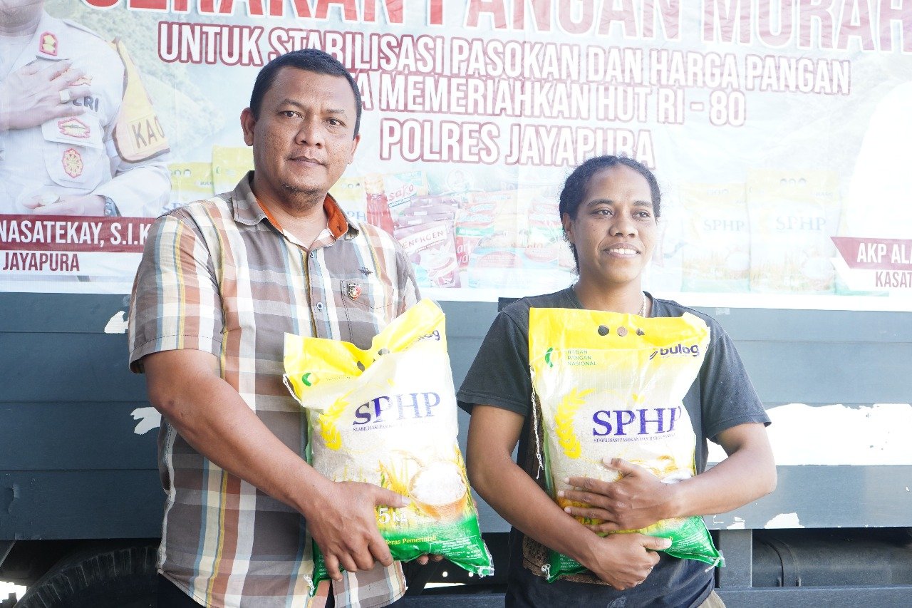 Papua – Polres Jayapura melaksanakan kegiatan Pangan Murah yang dipimpin oleh Kapolres Jayapura AKBP Umar Nasatekay, S.I.K., yang diwakili Kasat Reskrim Polres Jayapura, AKP Alamsyah Ali, S.H., M.H. Kegiatan ini digelar sebagai upaya membantu masyarakat mendapatkan kebutuhan pokok dengan harga yang lebih terjangkau, Jumat (05/09).