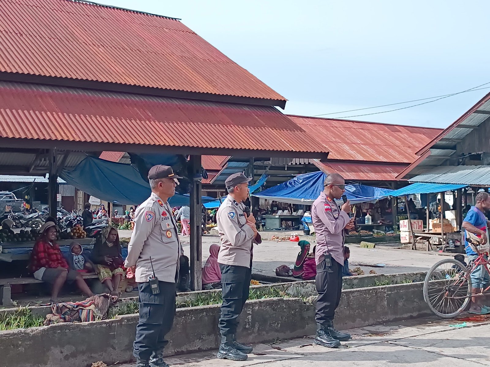 Kegiatan yang berlangsung di Pertigaan Pasar Sinakma dan Pasar Putikelek tersebut dipimpin langsung oleh Wakapolres Jayawijaya AKP Albertus Mabel, S.I.K., M.A.P., bersama Kasat Binmas IPTU Zabur Esomar serta personel Regu siaga.