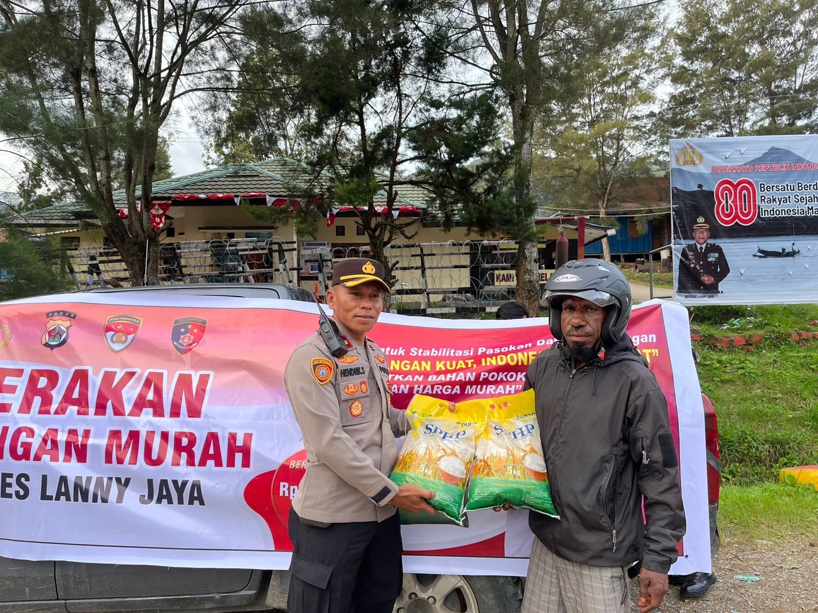 Papua – Polres Lanny Jaya kembali menggelar Operasi Gerakan Pangan Murah (GPM) Tahap 5 sebagai bentuk kepedulian Polri dalam mendukung stabilisasi pasokan dan harga pangan di wilayah Papua Pegunungan.