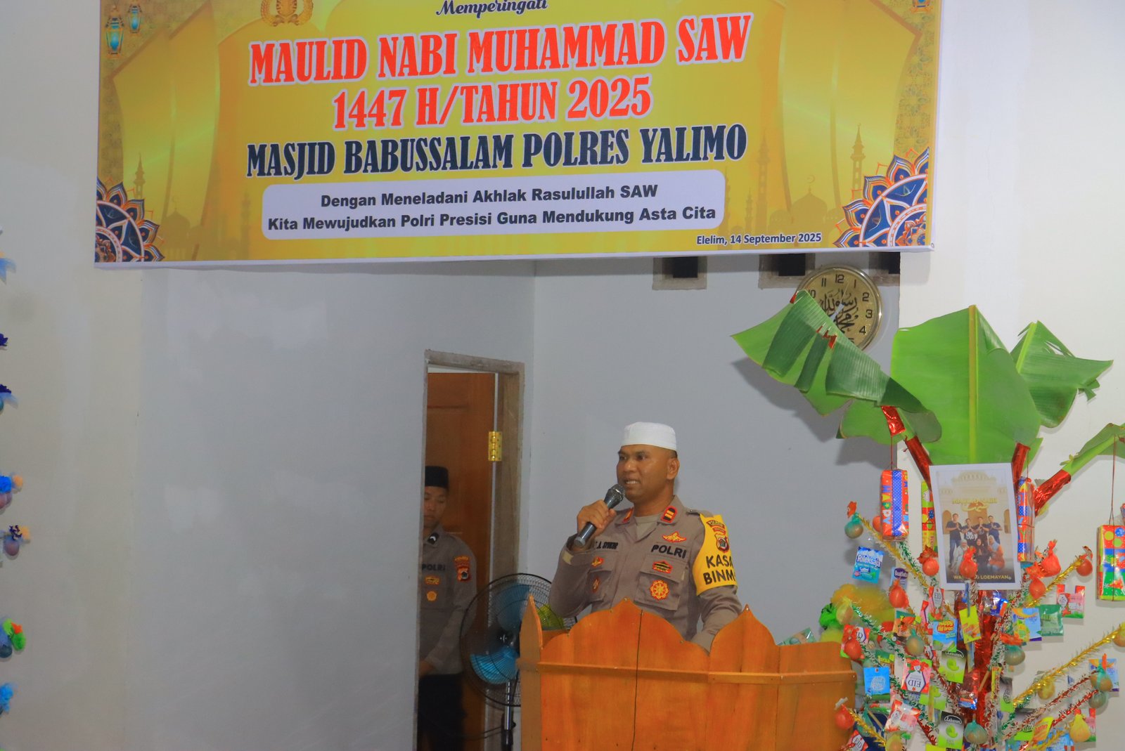 Sementara itu, Kasat Binmas Polres Yalimo, Aiptu La Ode Abdul Syukur, menyampaikan bahwa peringatan Maulid Nabi Muhammad SAW juga merupakan sarana untuk memperkuat iman dan takwa, serta mempererat silaturahmi antara Polri, tokoh agama, tokoh adat, dan masyarakat.