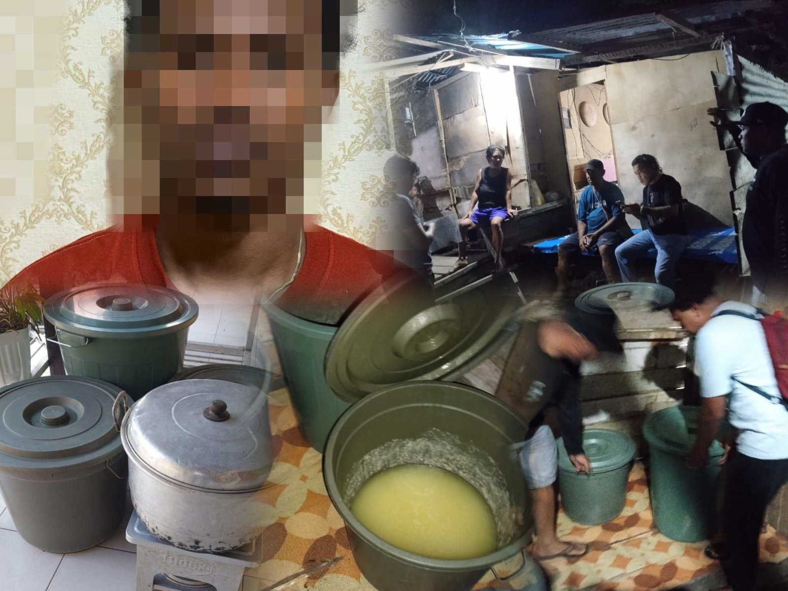 Dalam proses pengungkapan, petugas menemukan 3 (tiga) ember warna hijau berisikan cairan hasil fermentasi yang diduga kuat merupakan bahan dasar minuman keras jenis ballo. Selain itu, turut diamankan 1 (satu) buah kompor hookserta 1 (satu) buah panci yang digunakan dalam proses pembuatan minuman tersebut.
