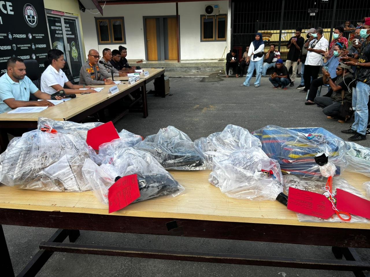 Press release dipimpin Kapolresta Manokwari Kombes Pol Ongky Isgunawan, S.I.K., didampingi Kasat Reskrim AKP Agung Gumara Samosir, S.Tr.K., S.I.K., Kasi Humas IPDA Kiesmanto, S.H., Wakasat Reskrim IPDA Syarif Maruapey, Kanit Pidum IPDA Eron Wanma, dan Katim Tekab Bripka Joni E. Sada.