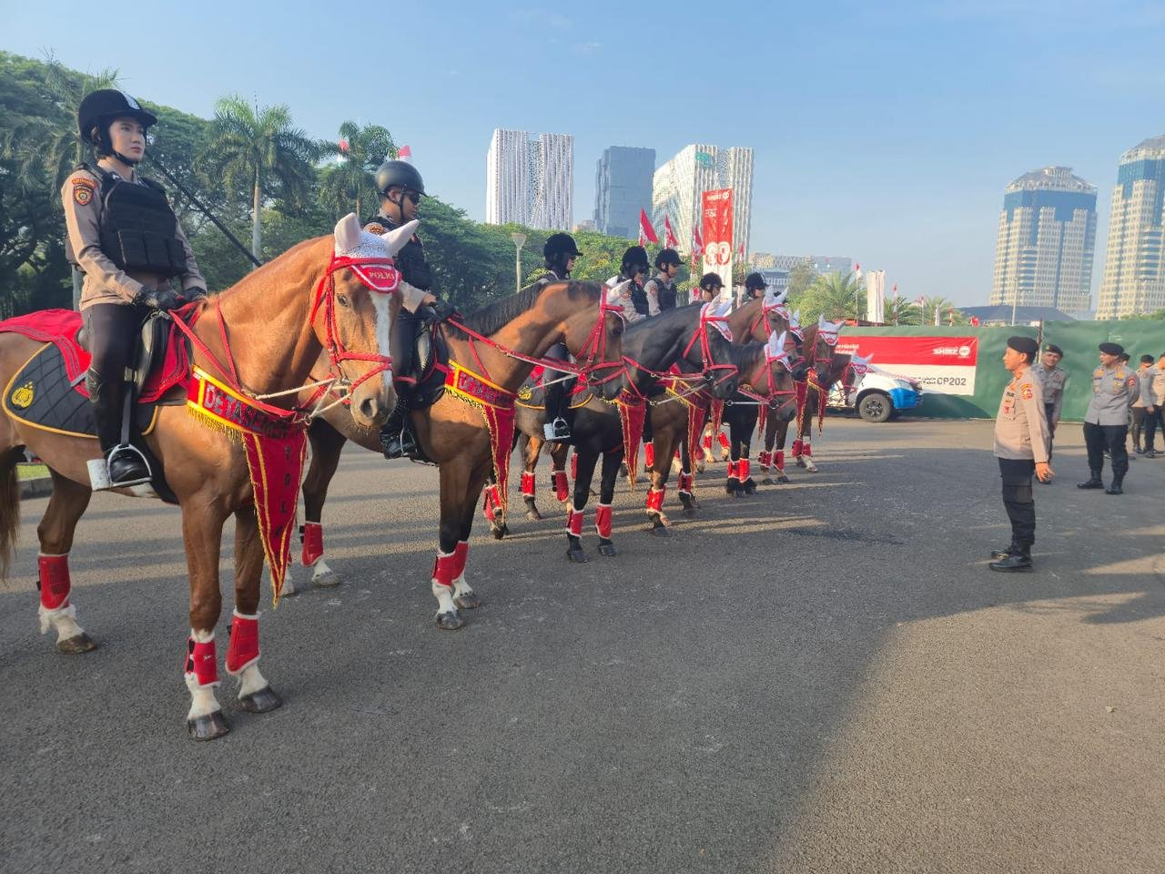 Sebanyak 10 ekor kuda dikerahkan dalam pengamanan kali ini. Dari jumlah tersebut, 8 ekor ditempatkan di area Monas, sementara 2 ekor lainnya berada di kawasan Bundaran Hotel Indonesia (HI).