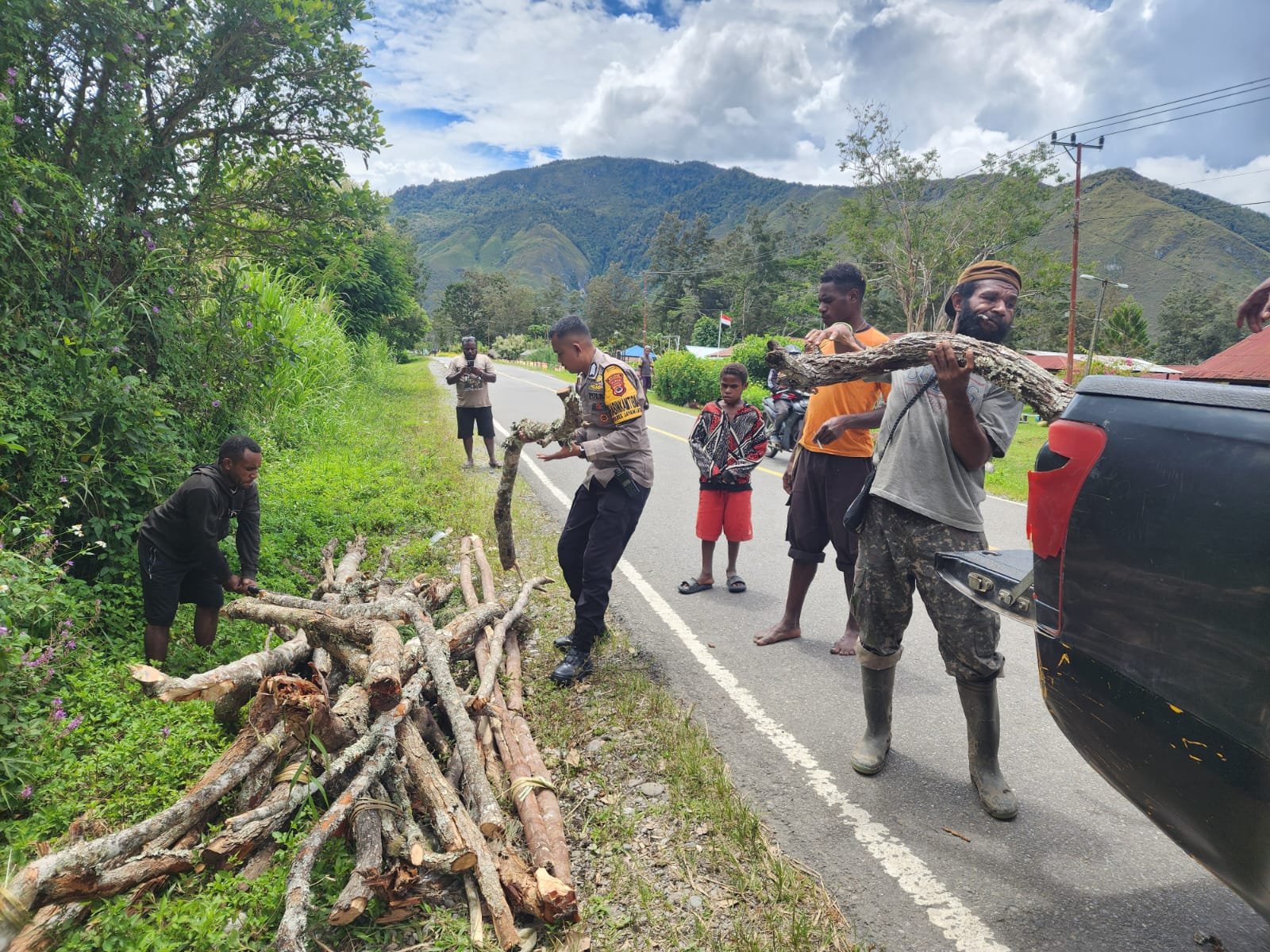 Selain melaksanakan patroli dan himbauan, personel Polsek Kurulu juga turut melaksanakan kegiatan kerja bakti bersama masyarakat di Kampung Obia, Distrik Kurulu, dalam rangka persiapan ibadah penutupan perayaan Paskah Tahun 2026.