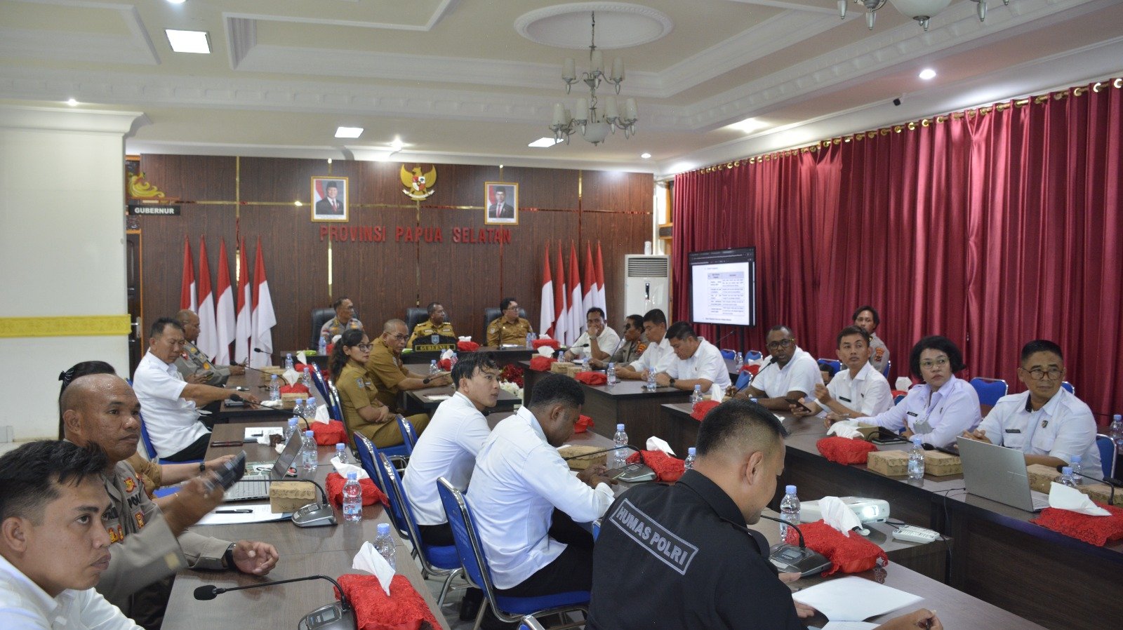 Papua – Tim Pengawasan Inspektorat Provinsi Papua Selatan dan Polda Papua melaksanakan rapat koordinasi pelaksanaan pengawasan izin peruntukan BBM,Pupuk, Pelabuhan dan Sekolah bertempat di Gedung Negara Kantor Gubernur Papua Selatan, Senin (20/10/2025).