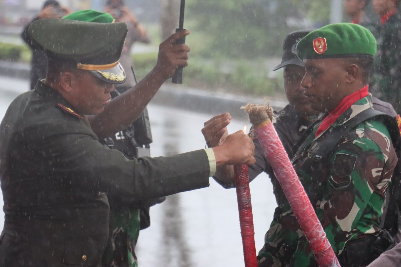 Dandim 1715/Yahukimo Letkol Inf Didiet Trilaksono, S.M, bertindak selaku Inspektur Upacara serta di hadiri oleh Sekda Kabupaten Yahukimo Redison Manurung, S.Pd., M.Si., CGCAE., CIAP, Kapolres Yahukimo AKBP Zet Saalino, S.H., M.H, Forkopimda lainnya dan para tamu undangan.