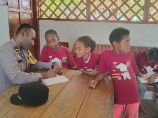 Papua – Anggota Satuan Binmas Polres Tolikara melaksanakan kegiatan pengecekan Pos Kamling Kanume Ampera yang berlokasi di Desa Ampera. Jumat (03/10/2025).