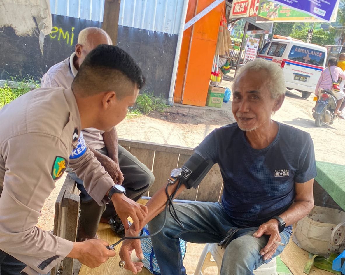 Setibanya di lokasi, tim langsung melakukan pemeriksaan kesehatan dan pengobatan kepada masyarakat yang berada di sekitar pasar. Dalam kegiatan ini, sebanyak 8 pasien dewasa mendapatkan layanan medis secara cuma-cuma.
