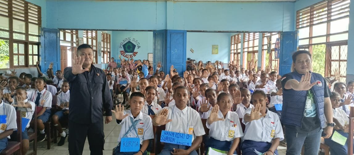 Papua – Dalam upaya mencegah penyalahgunaan narkotika di kalangan pelajar, Satuan Reserse Narkoba Polres Sarmi melaksanakan kegiatan sosialisasi mengenai bahaya penyalahgunaan Narkotika, Psikotropika, dan Bahan Adiktif (NAPZA) kepada peserta didik baru SMP YPK Ebenhaezer Sarmi. Kegiatan ini berlangsung di Aula SMA Negeri 3 Sarmi dan diikuti oleh sekitar 100 orang siswa baru, Kamis (17/07/2025).