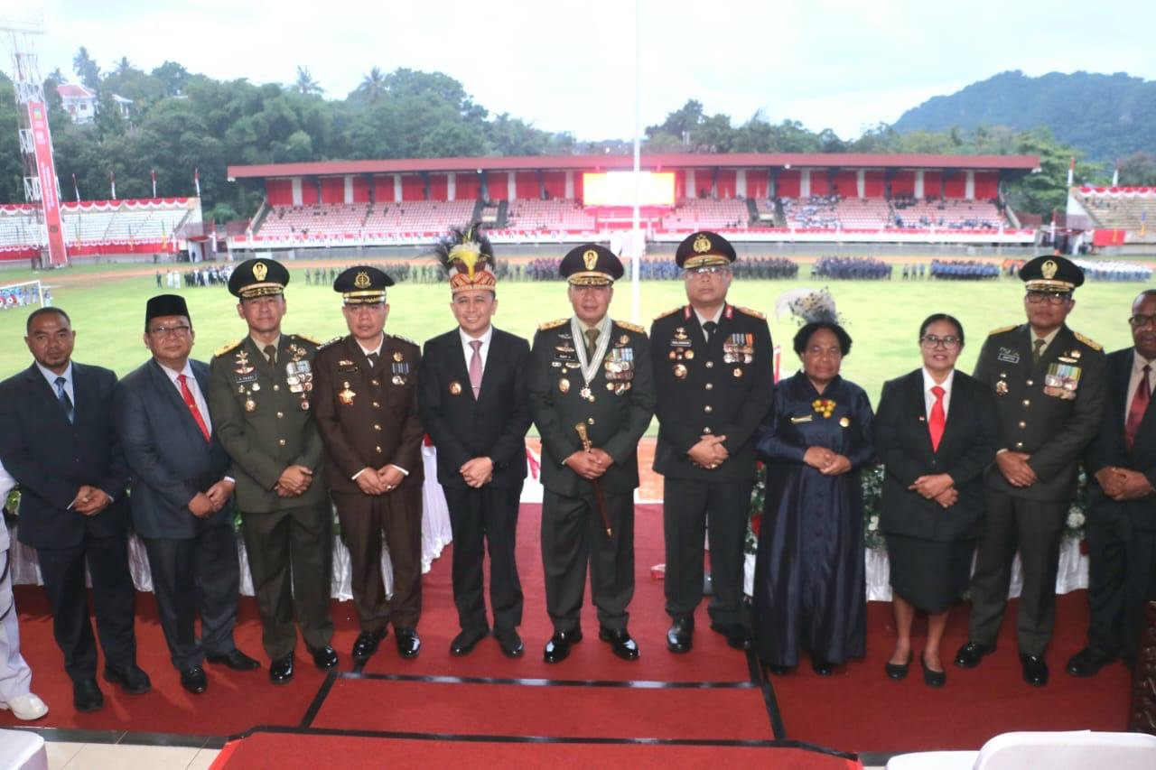 Bertindak sebagai Inspektur Upacara, Pangdam XVII/Cenderawasih Mayjen TNI Rudi Puruwito, S.E., M.M., sementara Komandan Upacara adalah Kabag Dalpers Ro SDM Polda Papua AKBP Timur Santoso, S.I.K., M.AP.