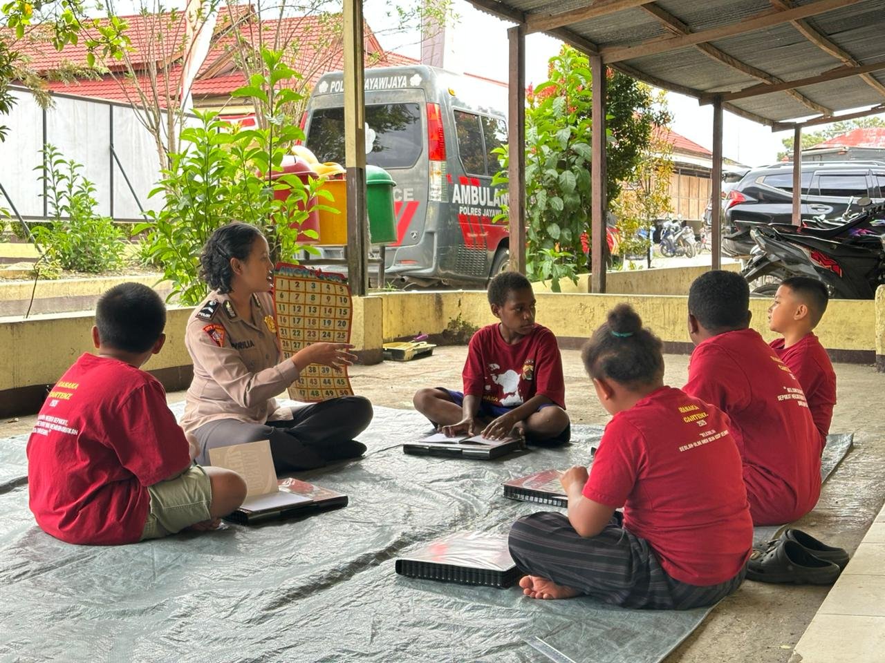 Sejumlah anak dari berbagai latar belakang tampak tekun mengikuti pelajaran yang dipandu langsung oleh personel Polres Jayawijaya. Mereka diajak untuk belajar berhitung, membaca, dan mengenal huruf melalui media pembelajaran yang menarik dan interaktif.